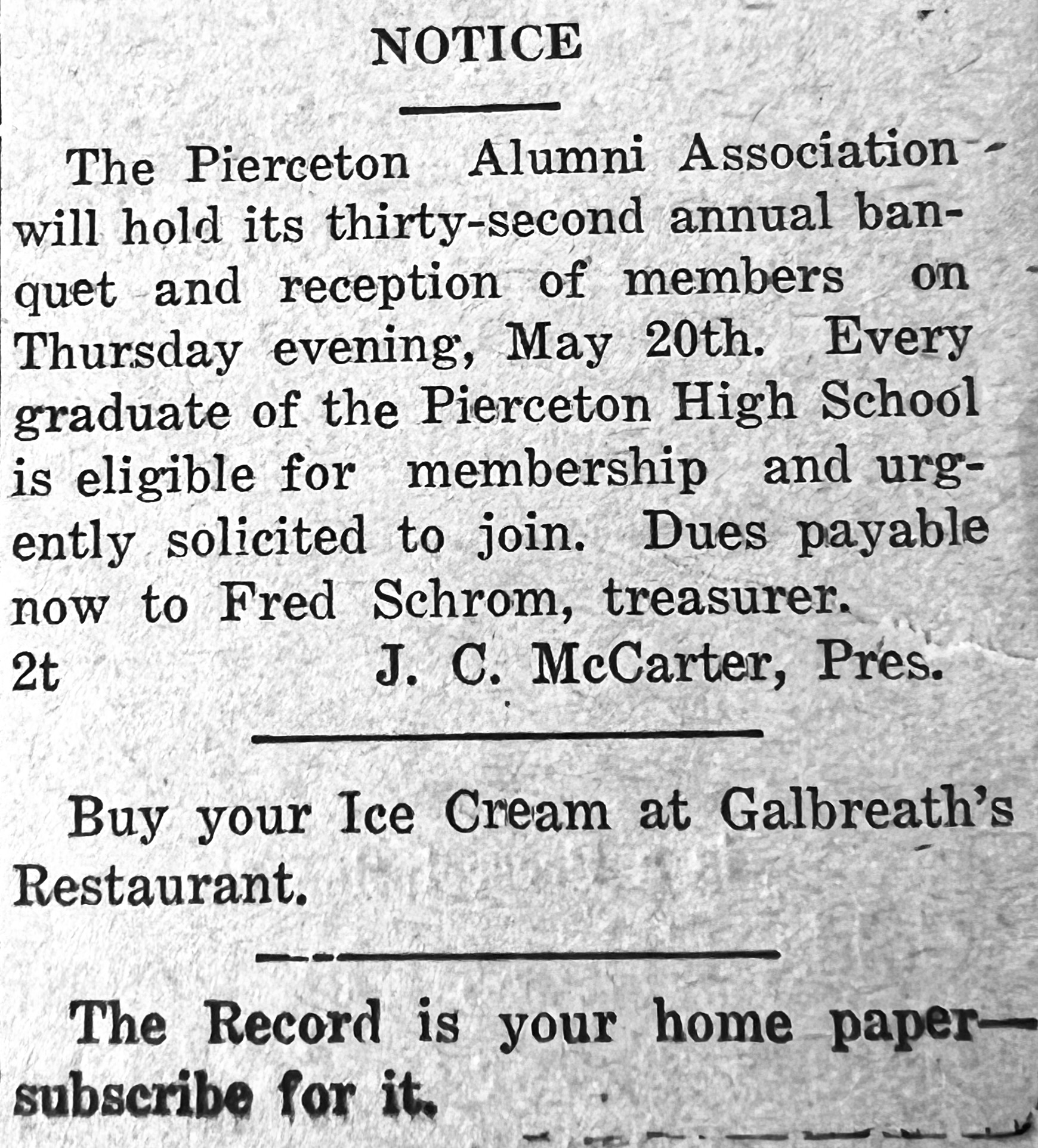 Descendants of these outstanding Seniors of the Pierceton High School Class of 1926 continue to live lives of dedication in the Pierceton area and beyond. We do well to follow in their footsteps.
